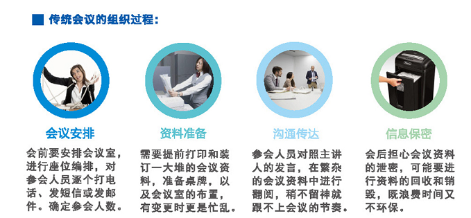 ■辦會(huì)效率低 ■與會(huì)人員累 ■表現(xiàn)形式單一 ■安全保密隱患